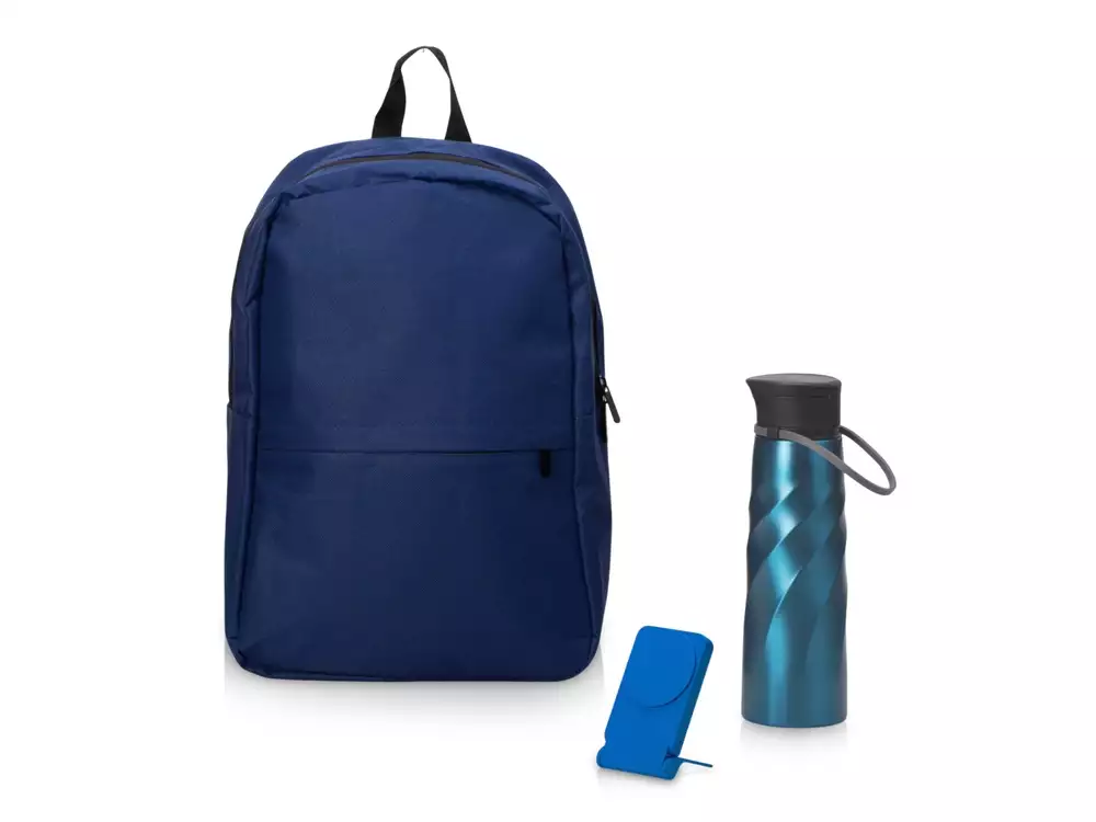 бутылка- нержавеющая cталь, аккумулятор- пластик, рюкзак- полиэстер из переработанного пластика