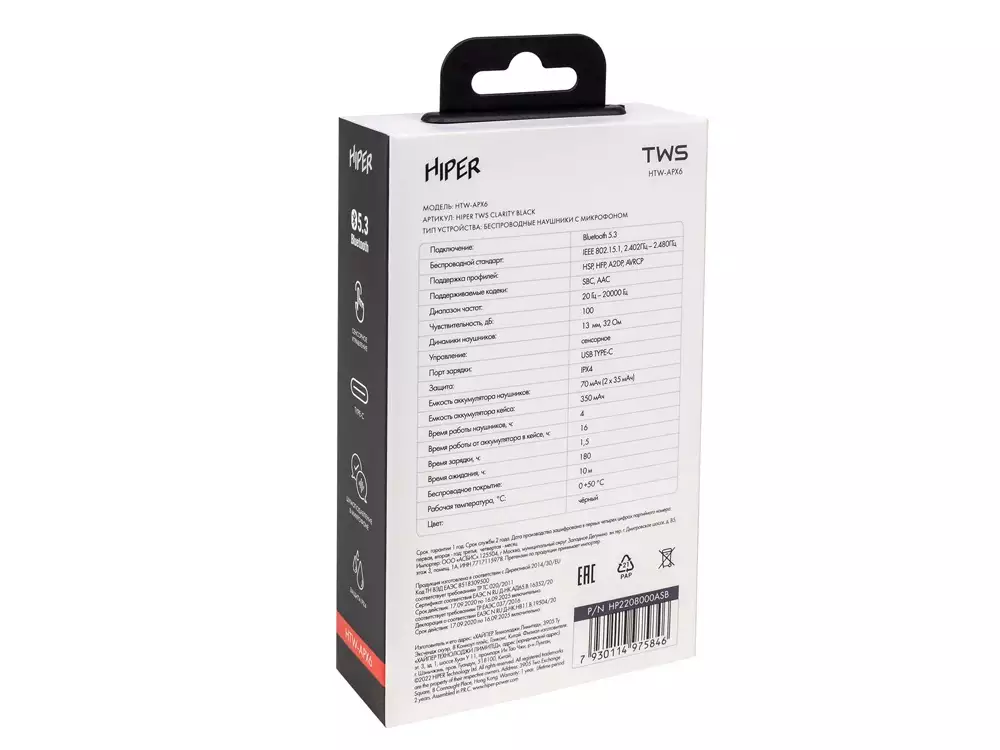 | Версия Bluetooth® | 5.3 |