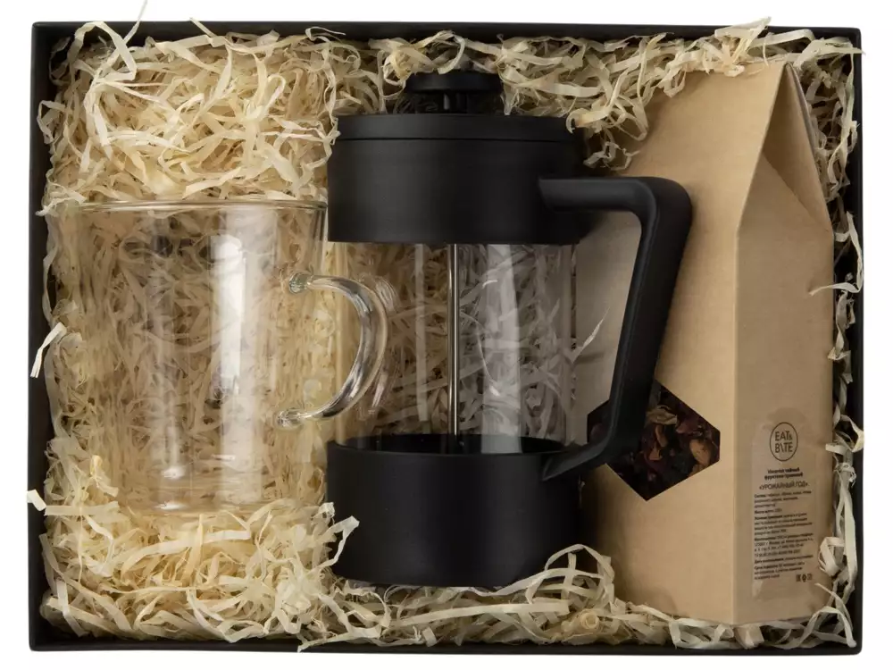 френч пресс, чай, кружка, наполнитель, коробка