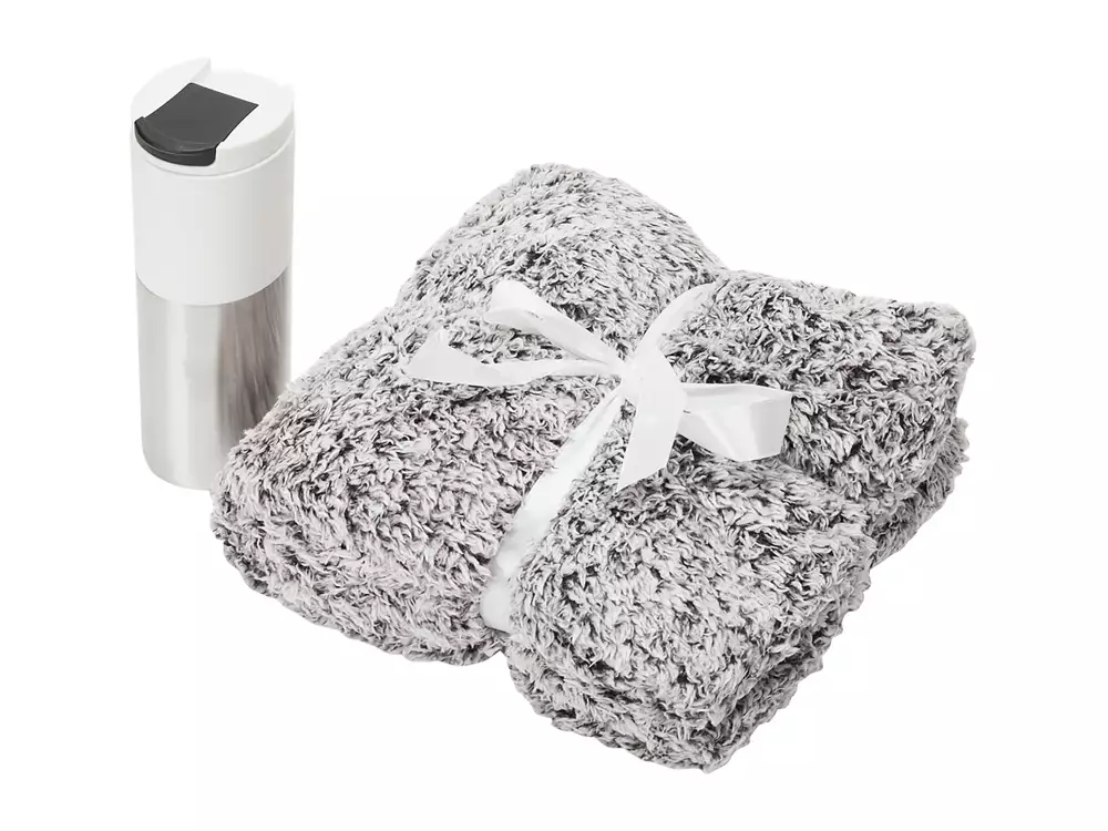 плед- бело-черный, термокружка- белый/серебристый