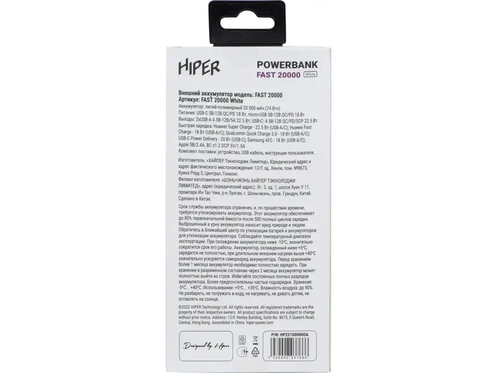 Портативный внешний аккумулятор «FAST», 20000 mAh